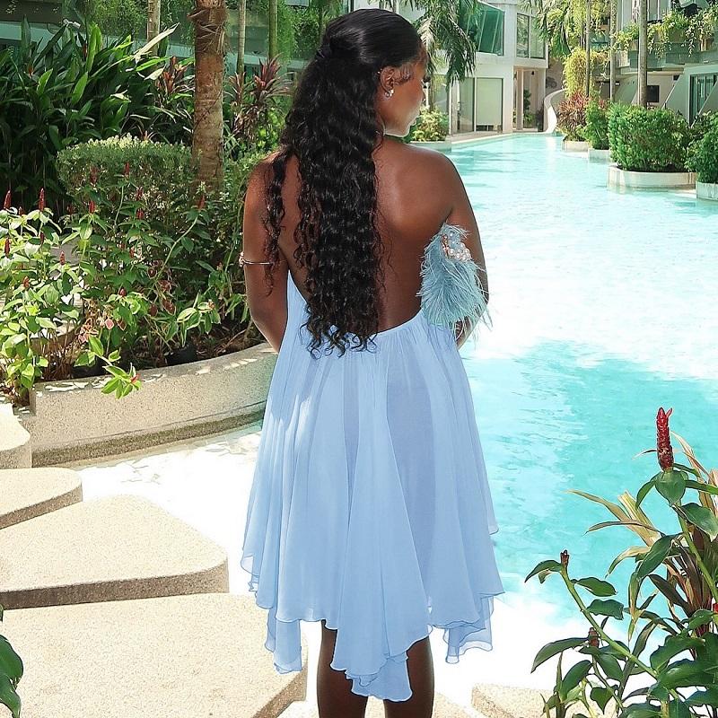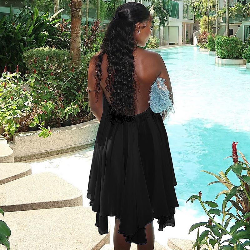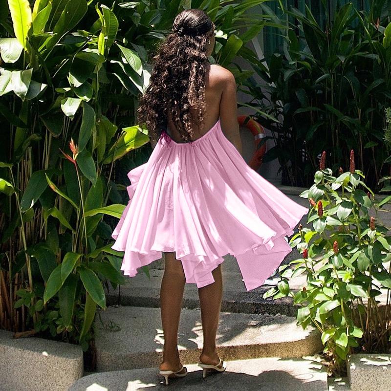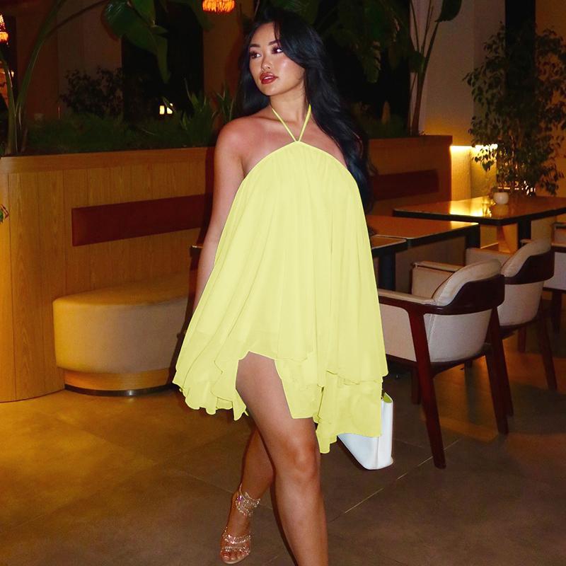 Dreamy Sleeveless Halter Mini Dress with Multiple Layers Solid Color Loose a Line Dress for Women'S 2025 Fall New Arrival Casual Elegant Outfit Parties & Dates, Feminine & Trendy Gown Dresses