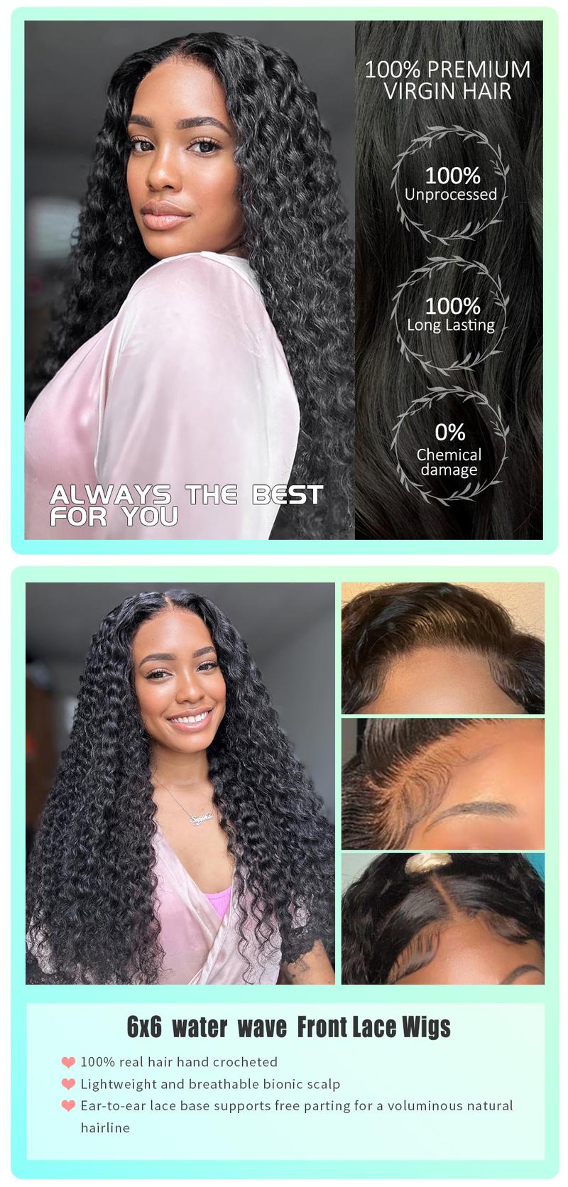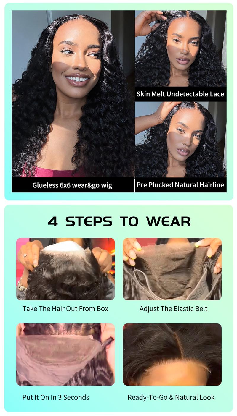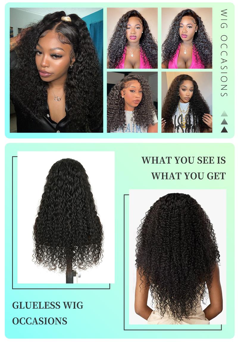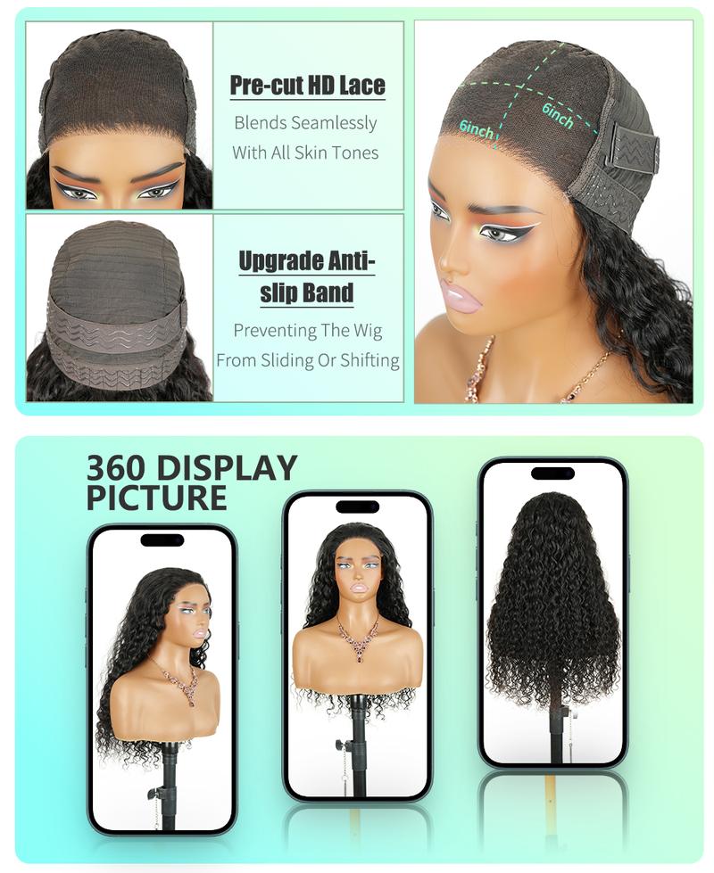 【Water wave Wig】6x6 Pre-bleached Pre-pulled Pre-cut HD Lace Wear Go Wigs. No glue closure wig, no need any extra work, wig beginners can easily manage.