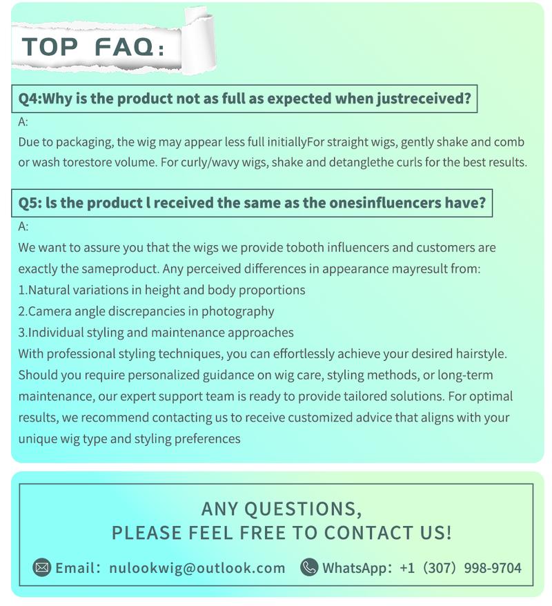 【Lace Wig Color】NULOOK HAIR wig comes in classic black color, which can be matched with any outfit. Perfect for women who want to change their hairstyle without destroying their natural hair texture.
