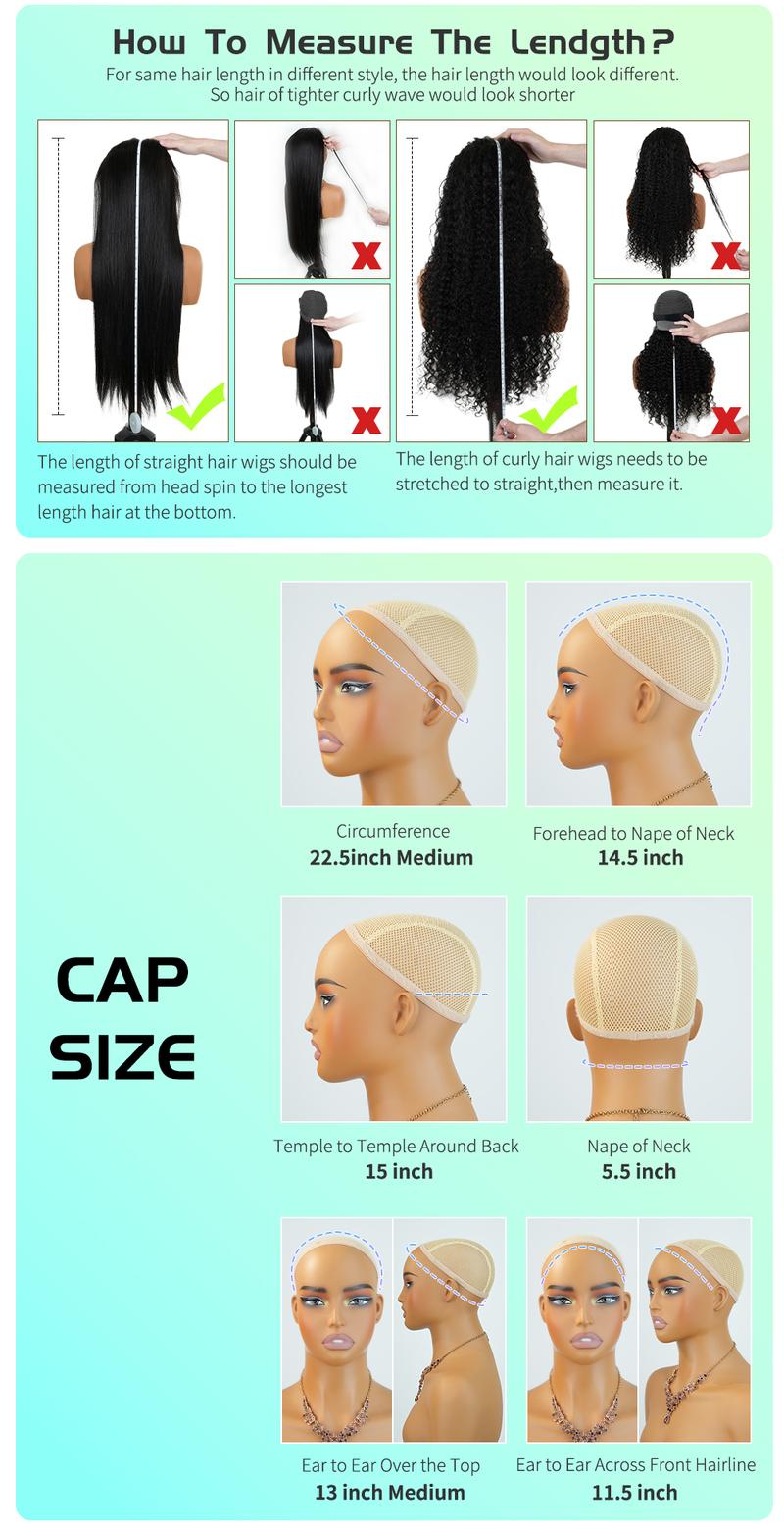 【Wig Cap Size】This wig cap is average size, about 22.5 inches, medium cap, 1 adjustable shoulder strap and 4 combs. It is easy to wear and adjust, fits your head circumference and comfortable to wear.