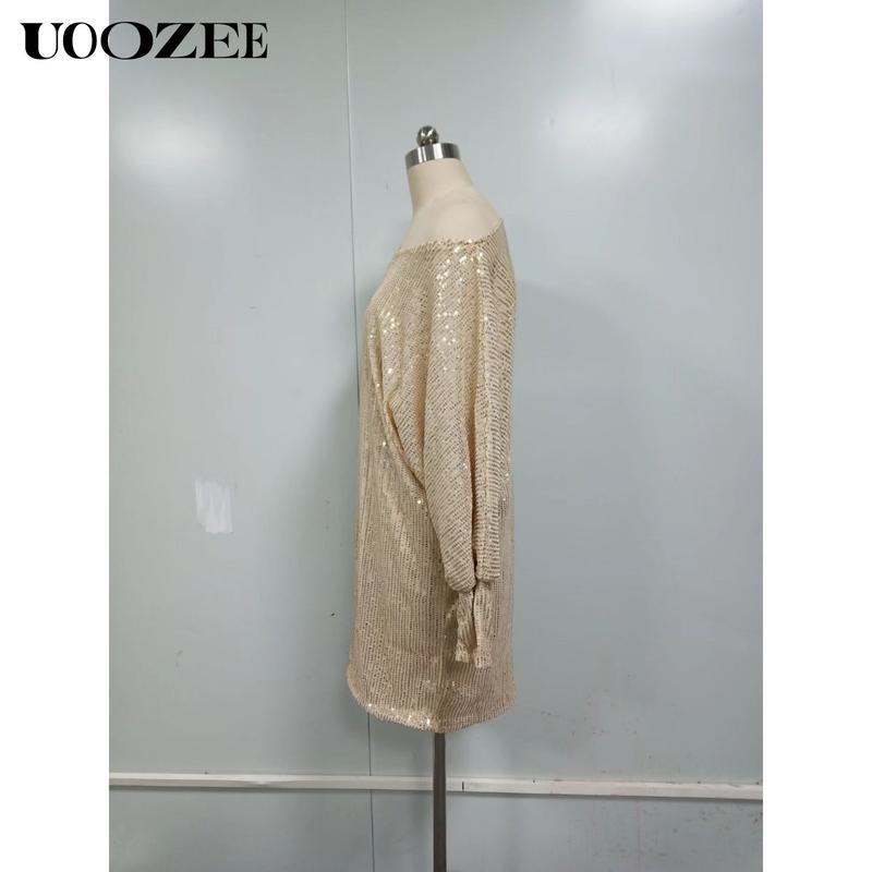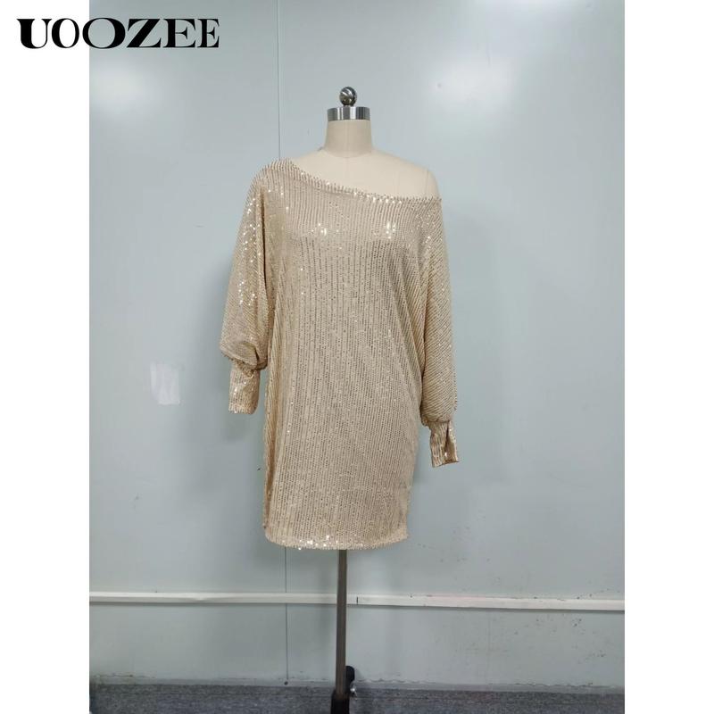 UOOZEE Women A-Line Loose Asymmetric Sequined Solid Color One-Shoulder Mini Dresses Short Dresses Summer Multicolor Polyester Casual Wear Basic Birthday Outfit Elegantoutfits