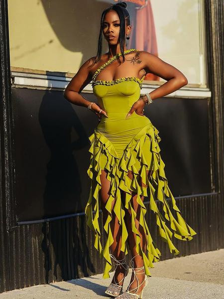 【Frilled Edges】: Features unique frilled edges, adding a playful touch that distinguishes it from standard dresses in the category.