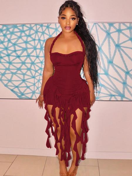 Women'S Plain Ribbon Halter Neck Ruffle Hem Bodycon Dress, Chic Backless Sleeveless Mini Dress for Party Club Dating Wear, Ladies Summer Clothes, Valentine'S Day Gift for Girl